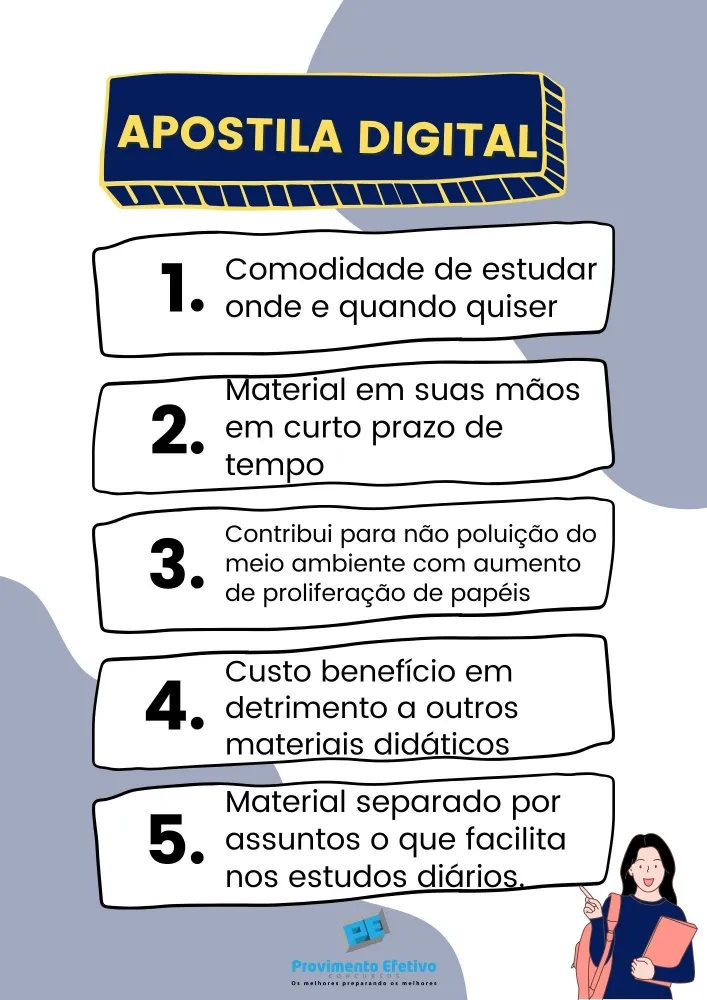 Apostila Digital inteligente e direcionada para os assuntos e temas mais importantes cobrados pela banca. Somos especialistas em bancas organizadoras.
