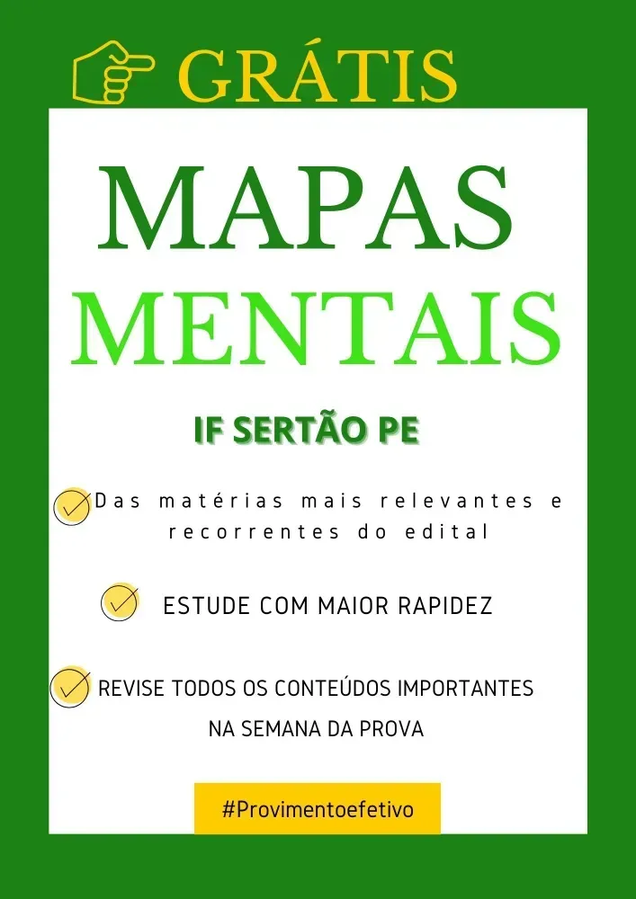 Apostila IF SERTÃO PE 2025 para ASSISTENTE DE ALUNO do Concurso IF SERTÃO PE 2025. Material completo e atualizado com todas as Matérias + Mapas Mentais e conteúdo bônus extra para turbinar seus estudos. Peça já a sua!