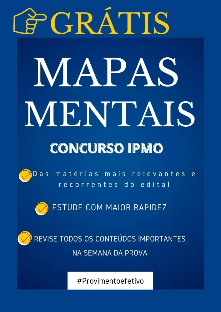 Acompanha grátis MAPAS MENTAIS das matérias mais importantes do edital, possibilitando você estudar em tempo recorde, e ainda revisar todo o conteúdo na semana que antecede a prova.