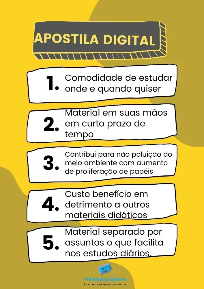 Apostila Digital inteligente e direcionada para os assuntos e temas mais importantes cobrados pela banca. Somos especialistas em bancas organizadoras.