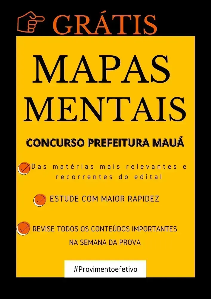 Acompanha grátis MAPAS MENTAIS das matérias mais importantes do edital, possibilitando você estudar em tempo recorde, e ainda revisar todo o conteúdo na semana que antecede a prova.