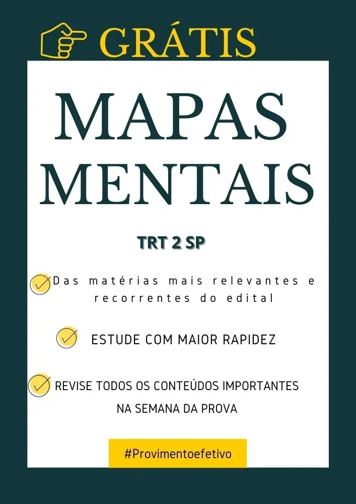 Acompanha grátis MAPAS MENTAIS das matérias mais importantes do edital, possibilitando você estudar em tempo recorde, e ainda revisar todo o conteúdo na semana que antecede a prova.
