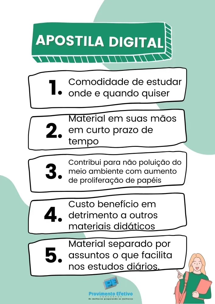 Apostila Digital inteligente e direcionada para os assuntos e temas mais importantes cobrados pela banca. Somos especialistas em bancas organizadoras.