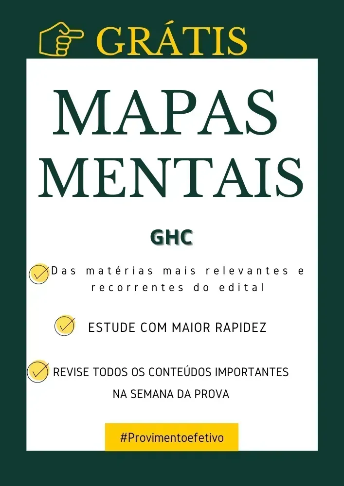 Acompanha grátis MAPAS MENTAIS das matérias mais importantes do edital, possibilitando você estudar em tempo recorde, e ainda revisar todo o conteúdo na semana que antecede a prova.