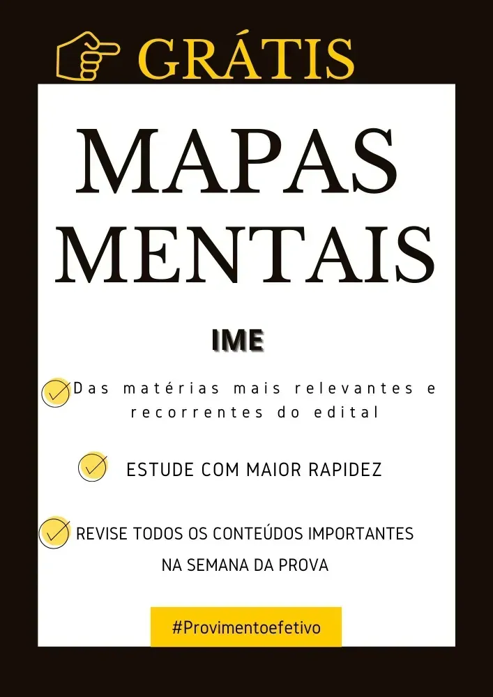 Acompanha grátis MAPAS MENTAIS das matérias mais importantes do edital, possibilitando você estudar em tempo recorde, e ainda revisar todo o conteúdo na semana que antecede a prova.
