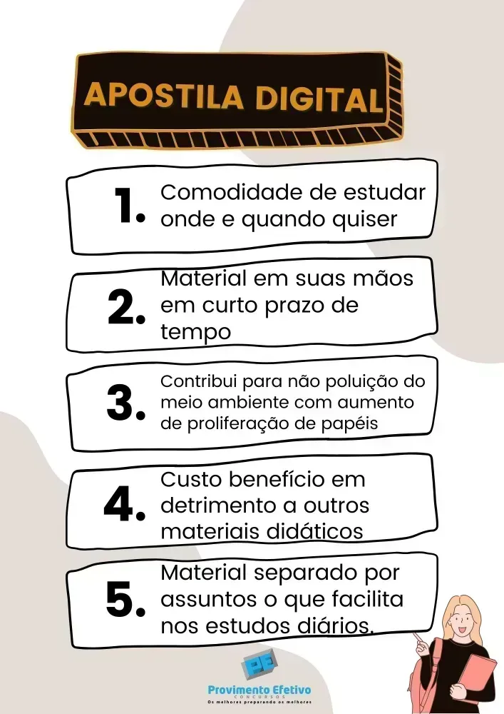 Apostila Digital inteligente e direcionada para os assuntos e temas mais importantes cobrados pela banca. Somos especialistas em bancas organizadoras.