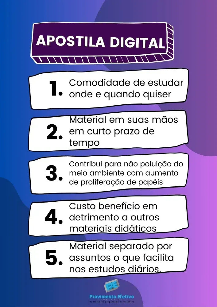 Apostila Digital inteligente e direcionada para os assuntos e temas mais importantes cobrados pela banca. Somos especialistas em bancas organizadoras.