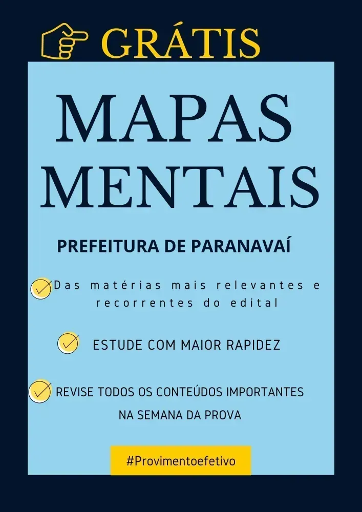 Acompanha grátis MAPAS MENTAIS das matérias mais importantes do edital, possibilitando você estudar em tempo recorde, e ainda revisar todo o conteúdo na semana que antecede a prova.