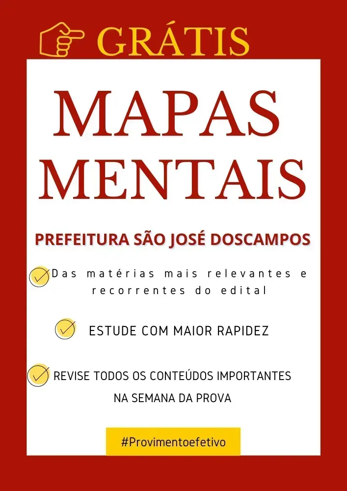 Acompanha grátis MAPAS MENTAIS das matérias mais importantes do edital, possibilitando você estudar em tempo recorde, e ainda revisar todo o conteúdo na semana que antecede a prova.