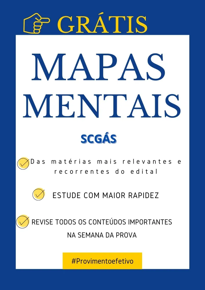 Acompanha grátis MAPAS MENTAIS das matérias mais importantes do edital, possibilitando você estudar em tempo recorde, e ainda revisar todo o conteúdo na semana que antecede a prova.
