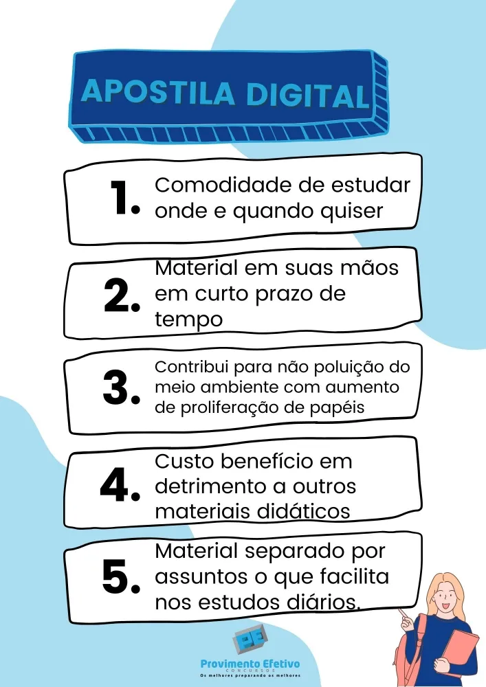 Apostila Digital inteligente e direcionada para os assuntos e temas mais importantes cobrados pela banca. Somos especialistas em bancas organizadoras.