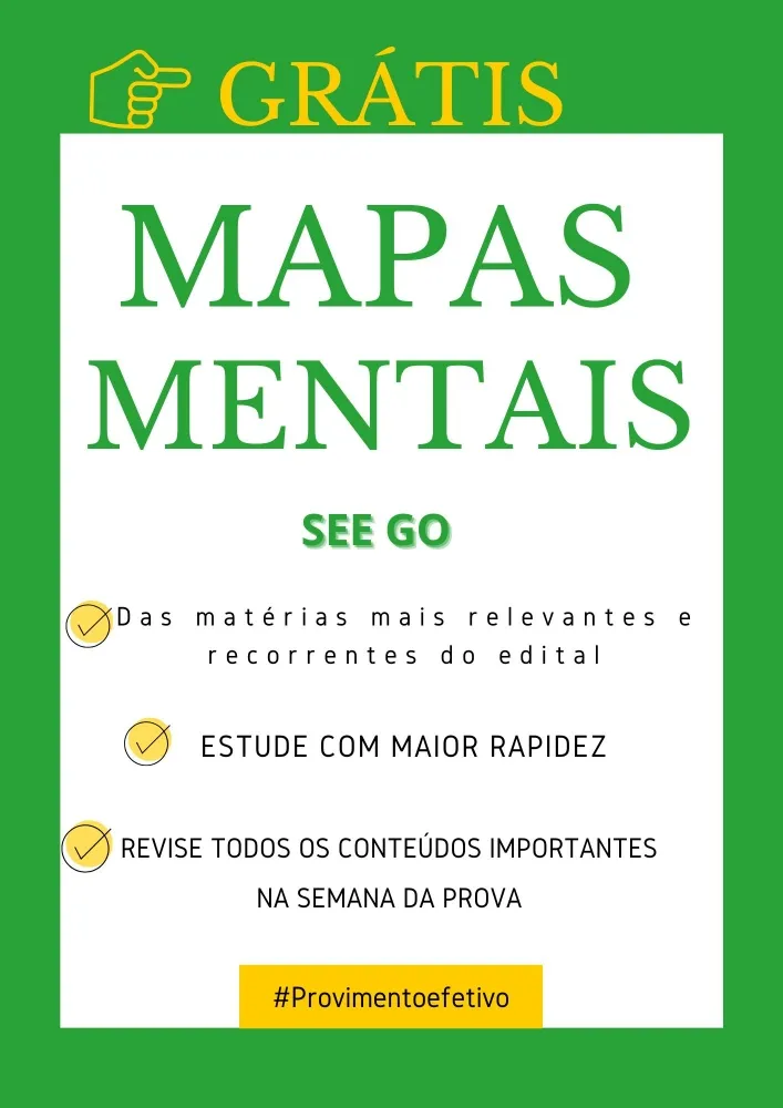 Acompanha grátis MAPAS MENTAIS das matérias mais importantes do edital, possibilitando você estudar em tempo recorde, e ainda revisar todo o conteúdo na semana que antecede a prova.