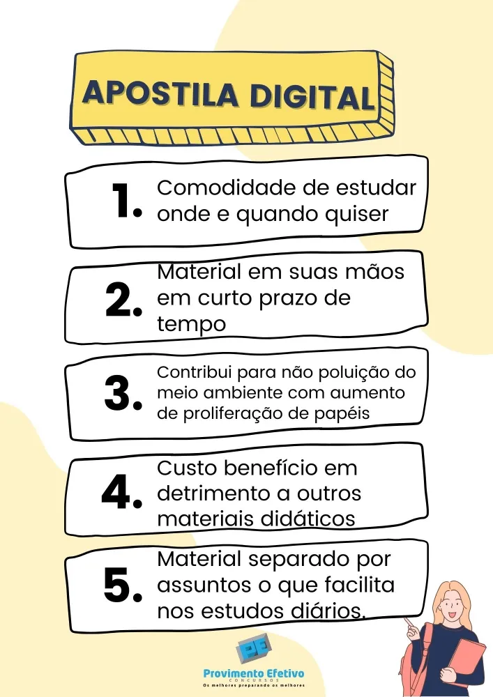 Apostila Digital inteligente e direcionada para os assuntos e temas mais importantes cobrados pela banca. Somos especialistas em bancas organizadoras.