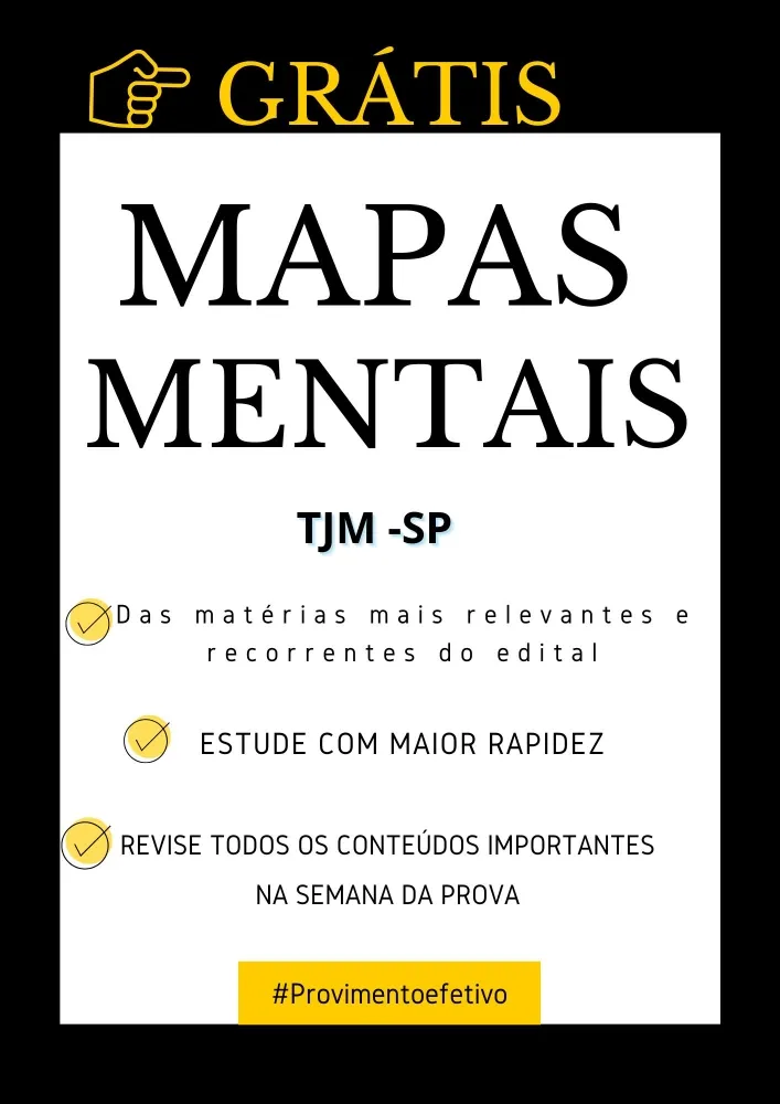 Acompanha grátis MAPAS MENTAIS das matérias mais importantes do edital, possibilitando você estudar em tempo recorde, e ainda revisar todo o conteúdo na semana que antecede a prova.