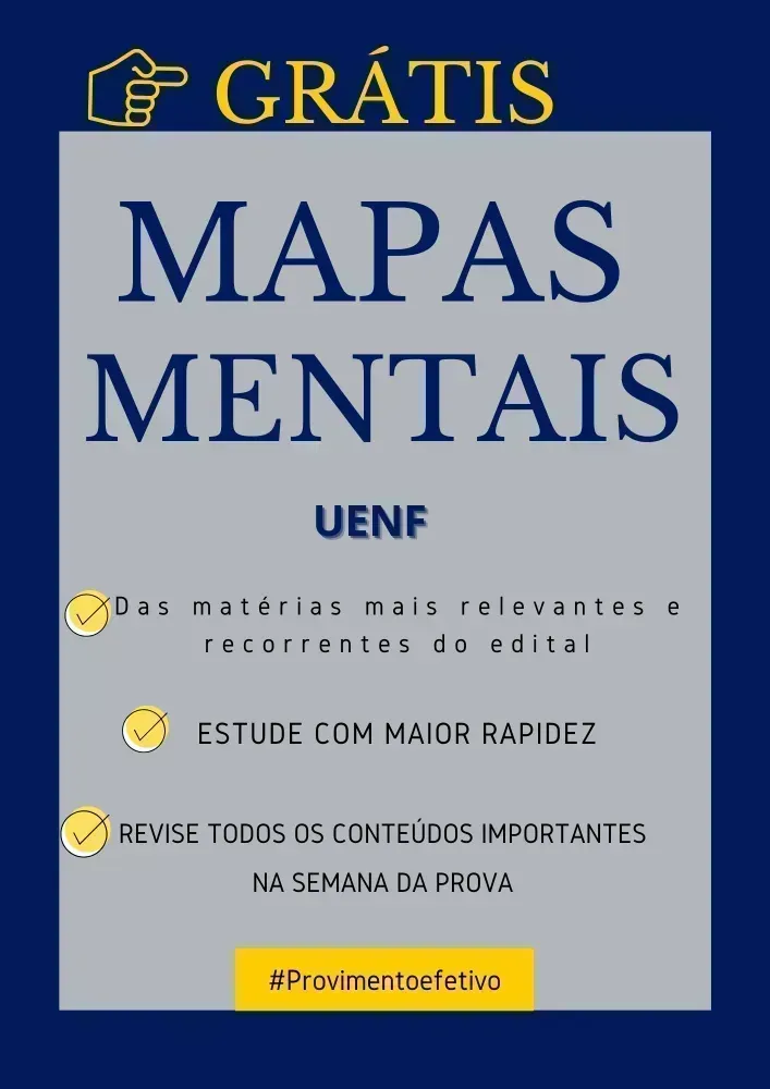 Acompanha grátis MAPAS MENTAIS das matérias mais importantes do edital, possibilitando você estudar em tempo recorde, e ainda revisar todo o conteúdo na semana que antecede a prova.