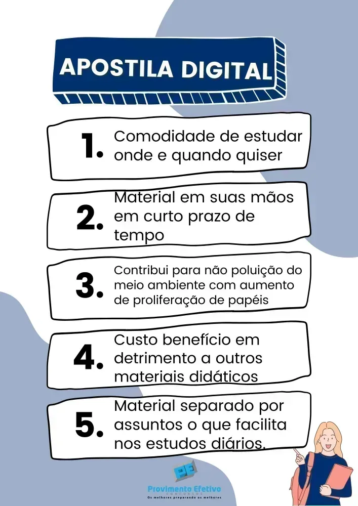 Apostila Digital inteligente e direcionada para os assuntos e temas mais importantes cobrados pela banca. Somos especialistas em bancas organizadoras.