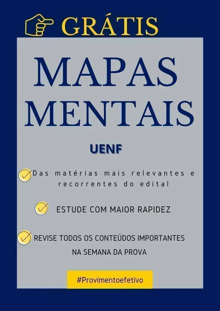 Acompanha grátis MAPAS MENTAIS das matérias mais importantes do edital, possibilitando você estudar em tempo recorde, e ainda revisar todo o conteúdo na semana que antecede a prova.
