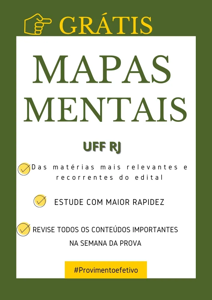 Acompanha grátis MAPAS MENTAIS das matérias mais importantes do edital, possibilitando você estudar em tempo recorde, e ainda revisar todo o conteúdo na semana que antecede a prova.
