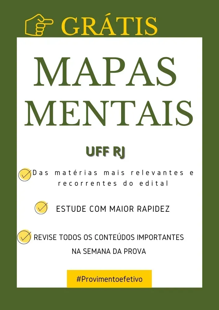Acompanha grátis MAPAS MENTAIS das matérias mais importantes do edital, possibilitando você estudar em tempo recorde, e ainda revisar todo o conteúdo na semana que antecede a prova.